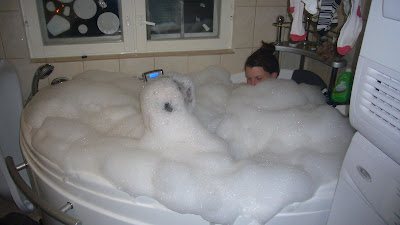 På lördagskvällen, med mannen hemma som kunde patrullera alla fönster, såg jag således fram emot lite kvalitetstid i badkaret,med ett tänt ljus som enda sällskap. Jag vet fortfarande inte riktigt hur det gick till,men plötsligt hade sonen gjort mig sällskap och den avslappnande atmosfären bytts ut mot "mammajagtarliteskumocksåfördetbrukarjaghatittanupåmignärjagdykertyckerinteduockså